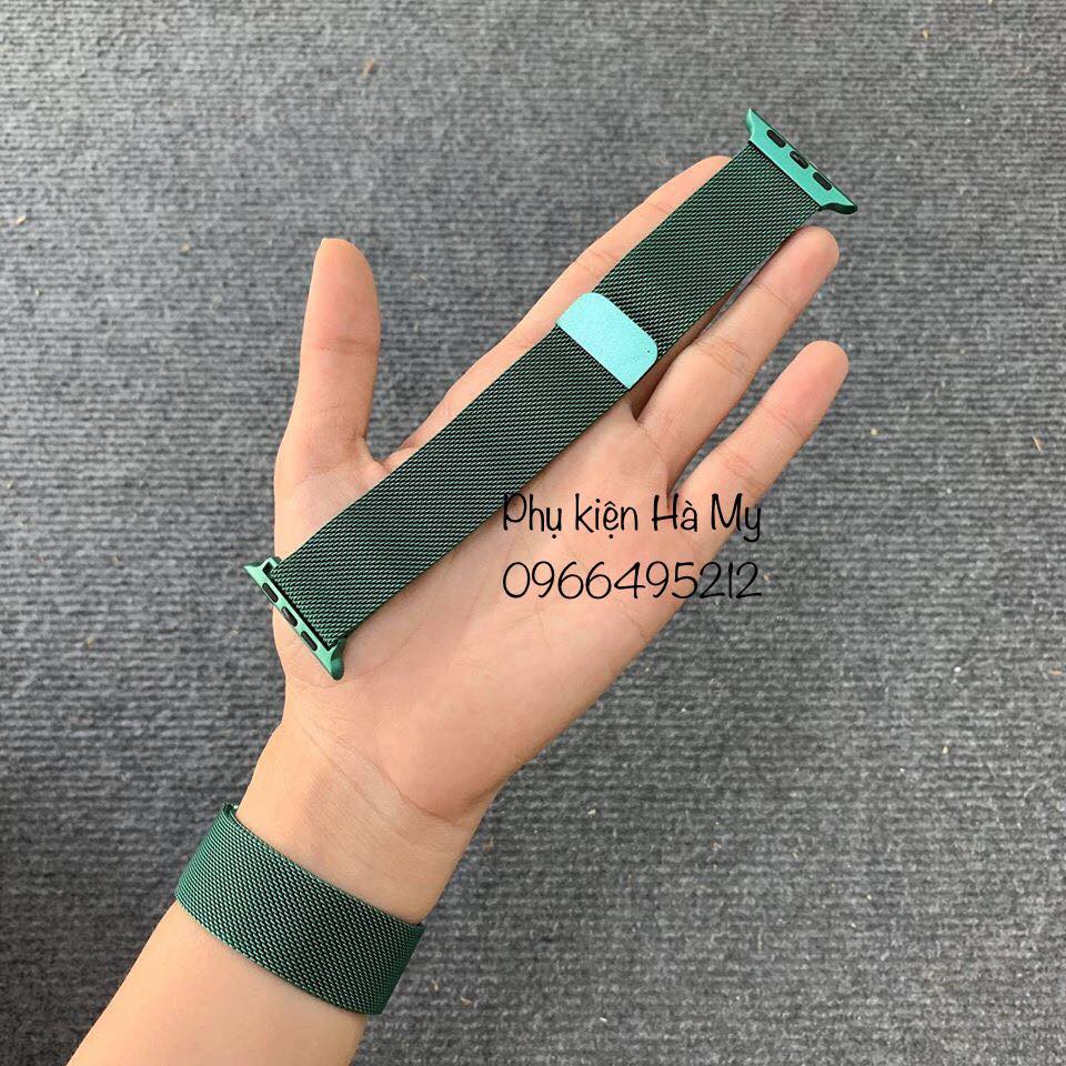 Điện Thoại & Phụ Kiện > Phụ kiện > Phụ kiện cho đồng hồ thông minh || Dây đeo Thép Chống Gỉ và dây cao su mầu Midnight green cho Apple Watch ( Milanese Loops)Còn hàng