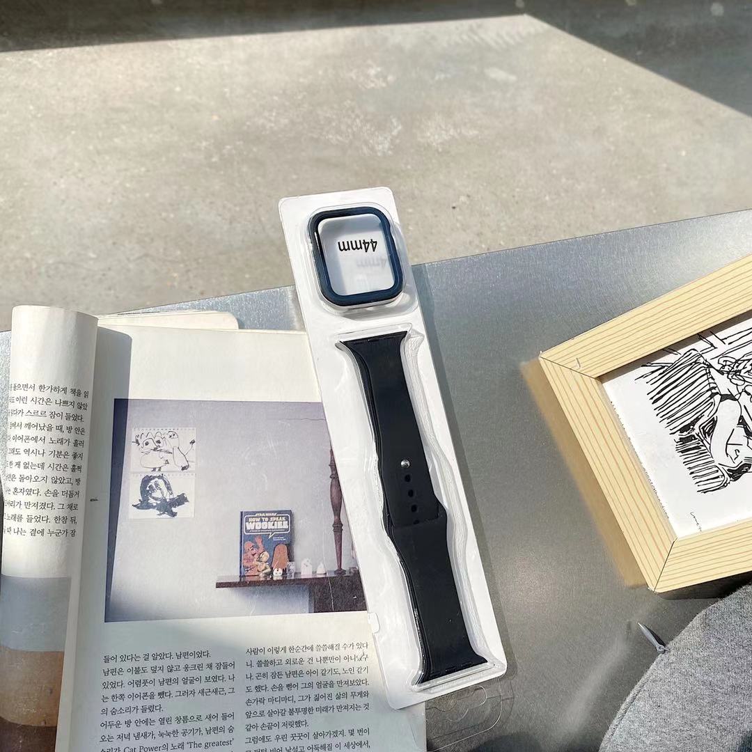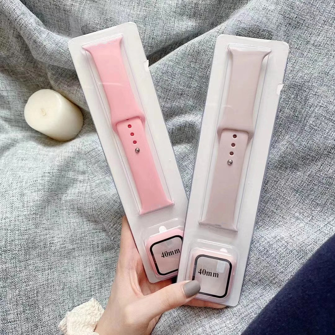 Bộ dây đeo và ốp mặt đồng hồ thông minh bằng silicon cho Apple Watch 6 5 4 3 SE cỡ dây 44mm 40mm 42mm 38mm
