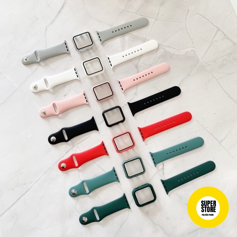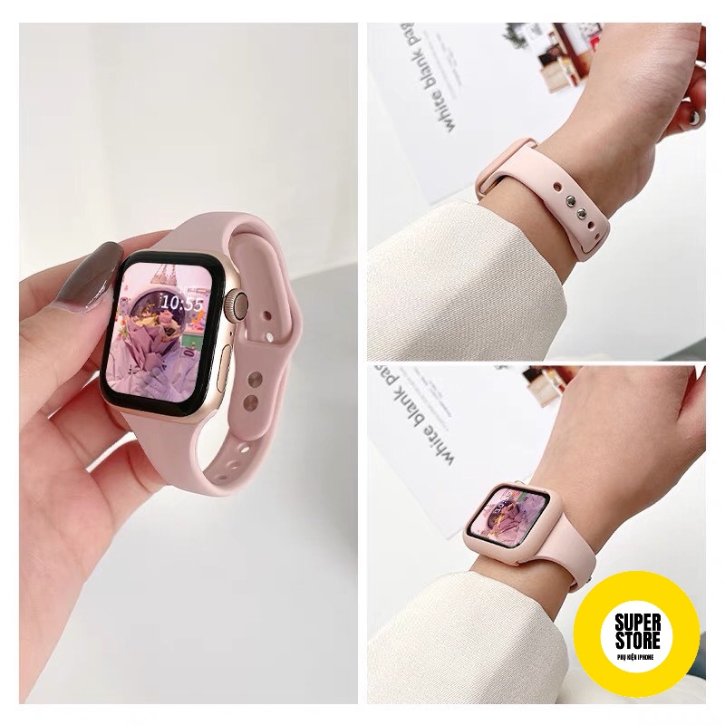 Giới thiệu Dây đeo và ốp silicon dành cho đồng hồ Apple watch Series 7 6 SE 5 4 3 2 1 kích thước 38mm/40mm/42mm/44mm