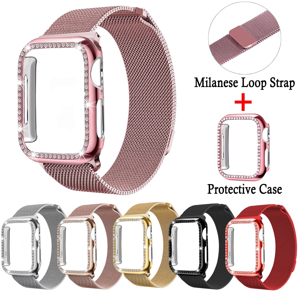 Dây Đeo + Vỏ Bảo Vệ Inox Milanese Cho Đồng Hồ Thông Minh Apple Watch 7 41mm 45mm 40mm 44mm 42mm 38mm