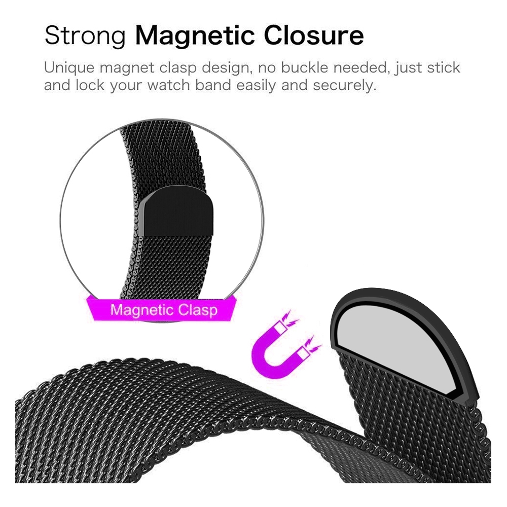 Thiết kế kẹp nam châm độc đáo, dây đeo đồng hồ từ tính và không cần khóa. Có thể điều chỉnh và khóa dây đồng hồ của bạn một cách dễ dàng và an toàn.