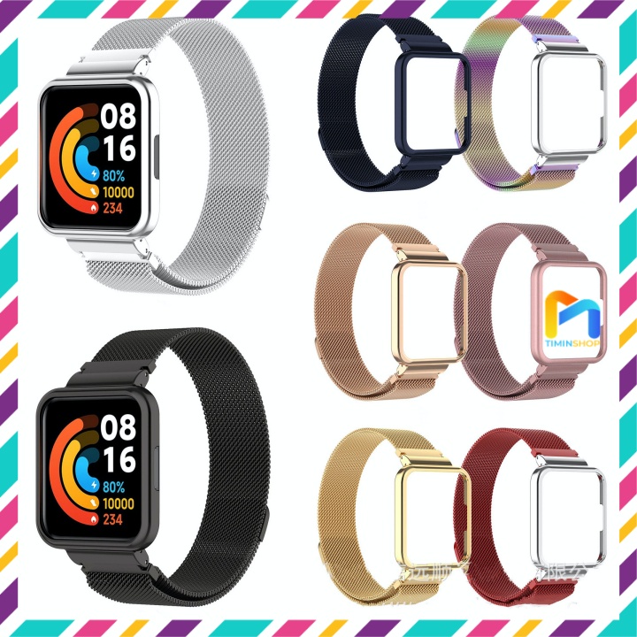 - Dây đeo + Ốp viền Thép khóa nam châm, dành cho đồng hồ✔ Xiaomi Redmi Watch 2 Lite