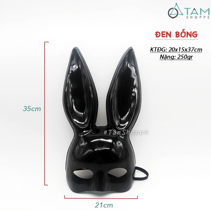 Giới thiệu [DÀY ĐẸP] Mặt nạ nhựa Tai thỏ dài phun nhung đen HLW-MN-57 ĐEN MỜ