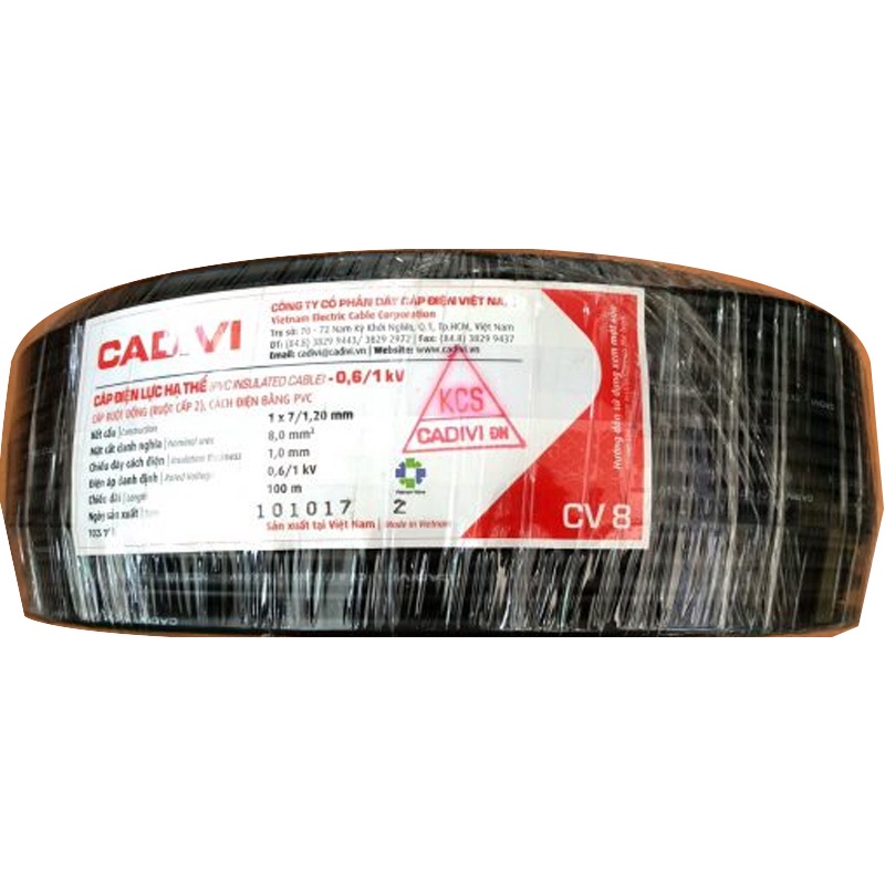 Dây Điện Cadivi 10 mm2 ruột đồng với vỏ bọc PVC cách điện chất lượng cao, mang đến độ bền và an toàn điện, chống cháy, chập điện tốt. Sản phẩm dây và cáp điện của CADIVI “dẫn điện tốt – cách điện an toàn – tiết kiệm điện”.Dây cáp điện CADIVI CV 10 mm2 được sản xuất và kiểm tra theo các tiêu chuẩn quốc gia (TCVN) cũng như các tiêu chuẩn quốc tế như IEC, ASTM, UL, JIS, AS, BS, DIN, …. CADIVI là doanh nghiệp nhà nước về sản xuất và kinh doanh đầu tiên được cấp giấy chứng nhận Hệ thống quản lý chất lượng quốc tế ISO 9002:1994 và chuyển đổi sang ISO 9001:2008 vào tháng 3/2011.