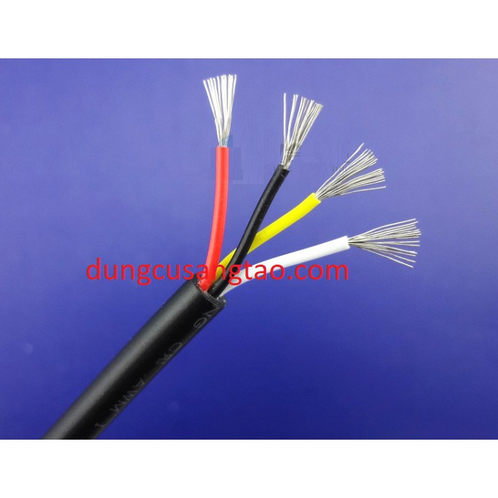 Dây điện CNC, laser 4 sợi - Mạ kẽm dùng để đấu dây cho máy CNC, laser mini, hoặc các mục đích khác. Dây điện làm từ đồng nguyên chất, bề mặt được phủ kẽm chống oxy hóa, chất lượng cao cấp, tuổi thọ cao hơn so với các loại bình thường, bọc nhựa PVC chống cháy.Thông số: