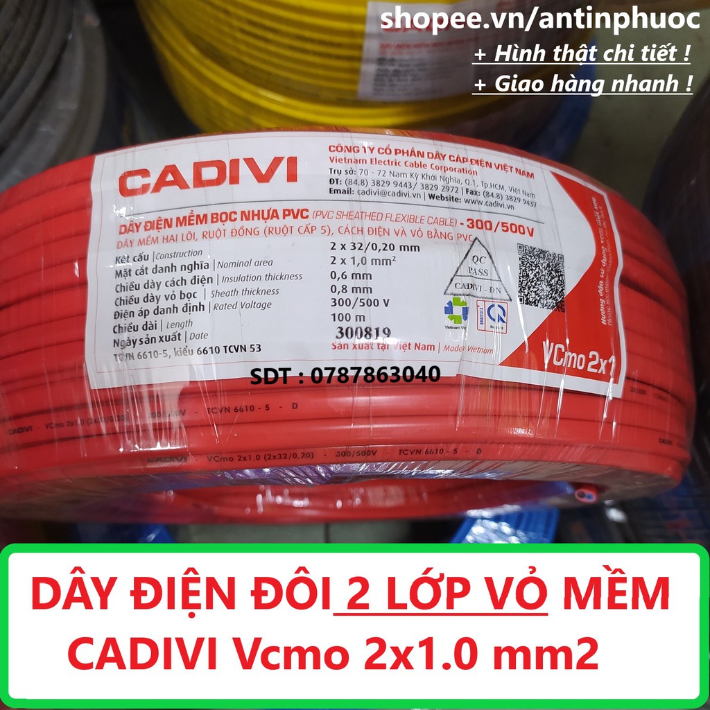 Giới thiệu Dây điện đôi 2 lớp vỏ 2x1.0 mm Cadivi cuộn 100 mét - dây điện mềm dẹp 2 lớp vỏ an toàn Cadivi Vcmo 2 x 1.0 mm2
