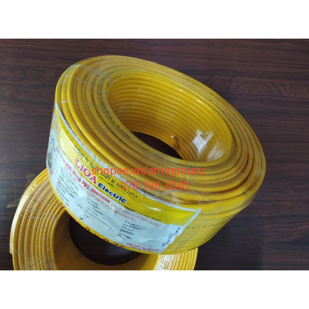 Dây điện đôi 2 lớp vỏ Lioa 2 x 0,75mm - dây điện đôi tròn dẹp vcmo 2x24t LIOA giá cuộn 100 mét
