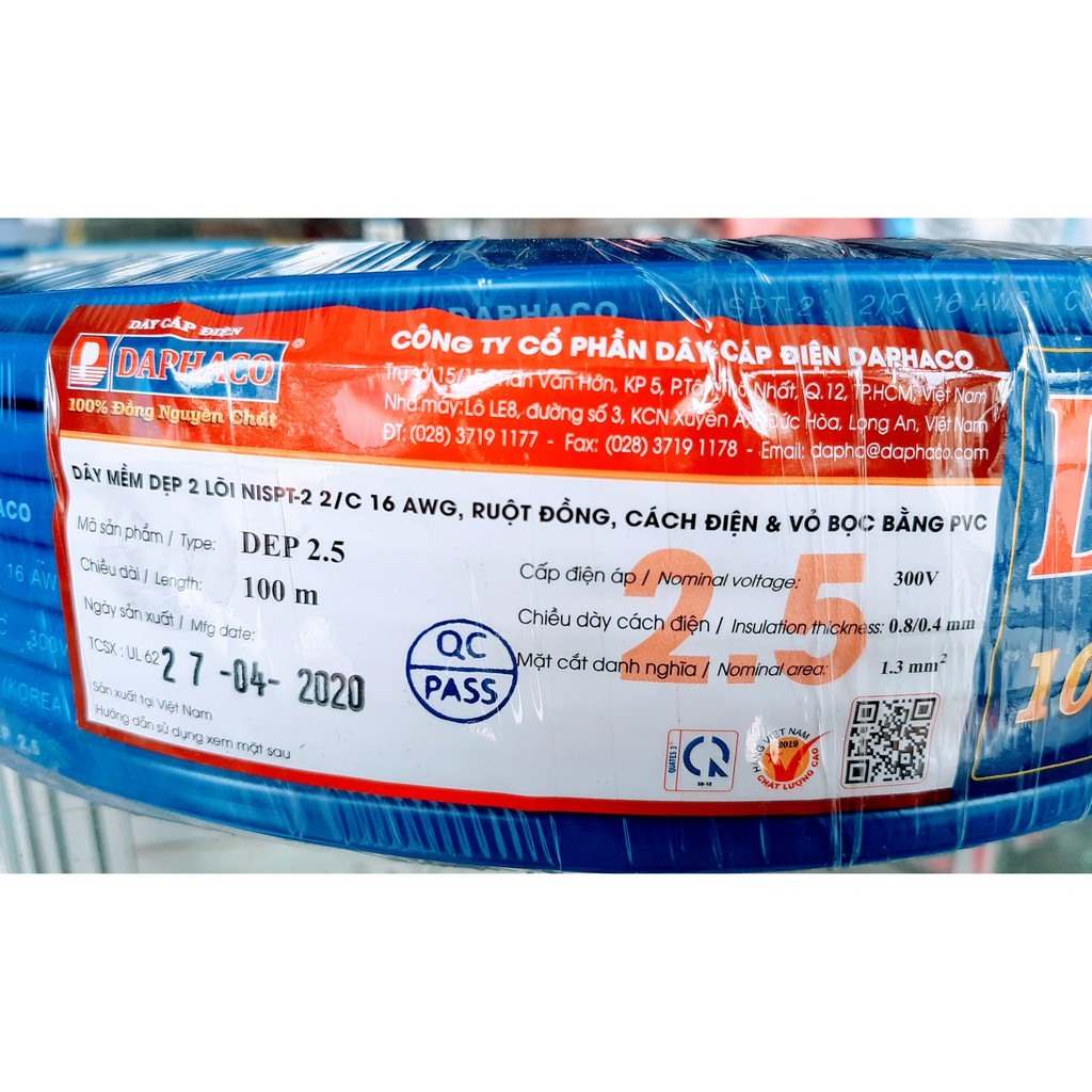 Qúy khách vui lòng nhận hàng sau khi đặt mua vì dây cắt sẽ không nối lại được.Dây điện Fadaco Oval dẹp 2x2.5 ( 2 sợi ) -Cuộn 100 mét Hai lớp vỏ bọc