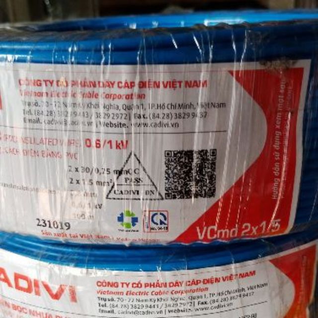 ¤ Dây điện đôi Cadivi 2x30 (dây đôi mềm VCmd 2x1.5)100 mét/1 cuộn ~4,3kgCông suất tải điện /2m~3800w