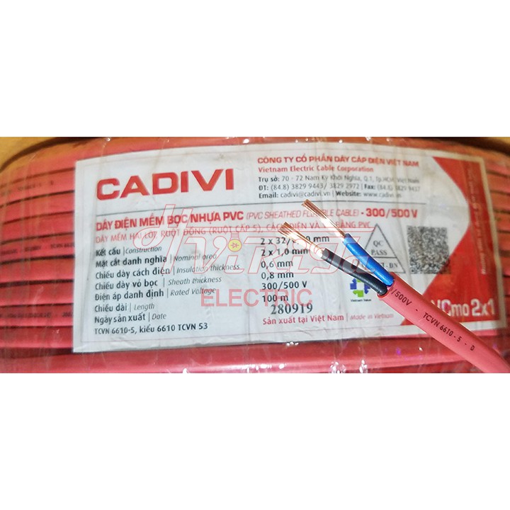 Giới thiệu Dây điện đôi Cadivi hai lớp bọc 2x2.5 2x1.5 2x1.0 2x0.75 1 mét