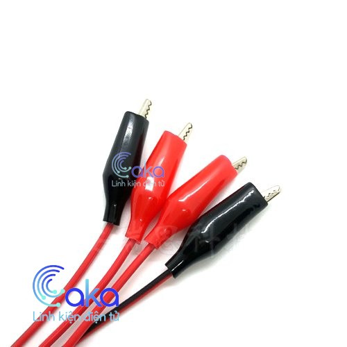 Dây điện đôi đỏ đen được gắn kẹp cá sấu 2 đầu, với chiều dài là 1 mét, và 4 đầu kẹp cá sấu,làm dây chuyển nguồn làm dây đo nguồn điện.