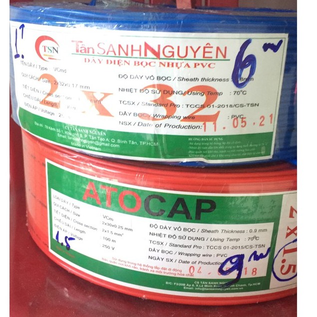 - Quy cách size cuộn đỏ : 2x30x0.25mm . ( dây điện loại 1.5 )