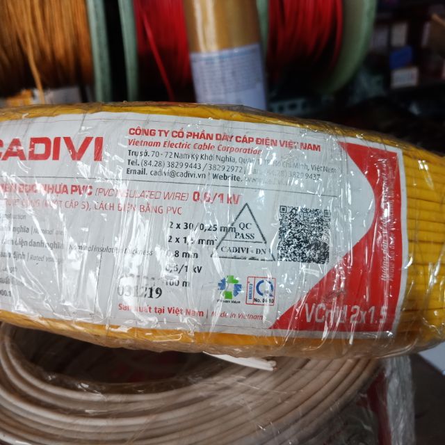 Thiết Bị Điện Gia Dụng > Mạch điện & Phụ tùng > Ổ cắm điện & Dây nối || Dây điện đôi mềm Cadivi 2x1.5 (2x30/0.25mm)Còn hàng