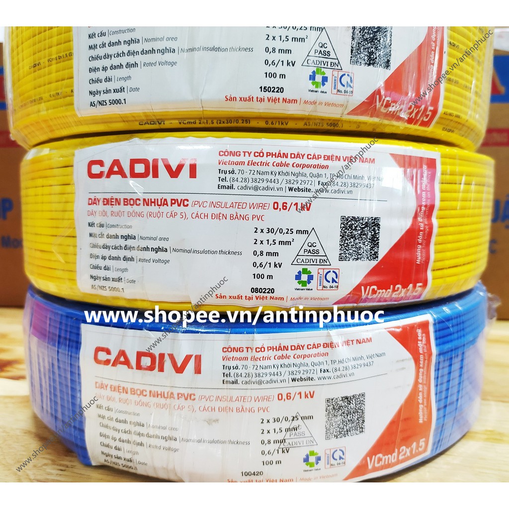 Với thương hiệu Cadivi thì độ uy tín đã được chứng thực trên toàn quốc ( chiếm 30% thị phần trong nước ) , sản phẩm của CADIVI được dùng rất phổ biến trong công trình dân sinh , nhà máy xí nghiệp , hạ tầng điện quốc gia...Shop An Tín Phước cung cấp dòng dây điện đôi dẹp cadivi mã hiệu là Vcmd 2x 1.5mm hay thường gọi là dây đôi 30 sợi . Với dây điện cadivi bạn có thể an tâm về chất lượng lõi đồng bên trong , quan trọng nữa là tiết diện lõi luôn chính xác với thông số ,quy cách đã công bố .