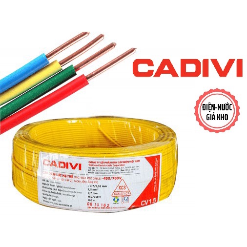 1 mét dây điện đơn Cadivi CV1.5, CV2.5 - Giao màu ngẫu nhiênDây điện đơn Cadivi là loại dây dẫn điện được sử dụng phổ biến rộng rãi trong mọi công trình từ công nghiệp, toà nhà đến dân dụng. Dây điện Cadivi được biết đến với chất lượng tốt và có độ bền cao, đáp ứng tốt những yêu cầu khắt khe của những công trình dân dụng nhà xưởng… Vì thế dây cáp điện Cadivi luôn là sự lựa chọn của nhiều người.