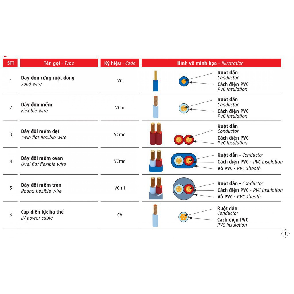 ✔ Dây đơn ruột đồng vỏ bọc PVC (CU/PVC)