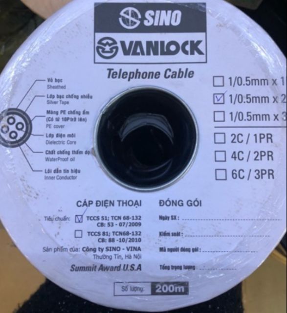 Dây Cáp điện thoại 2 đôi 4 lõi Sino-Vanlock