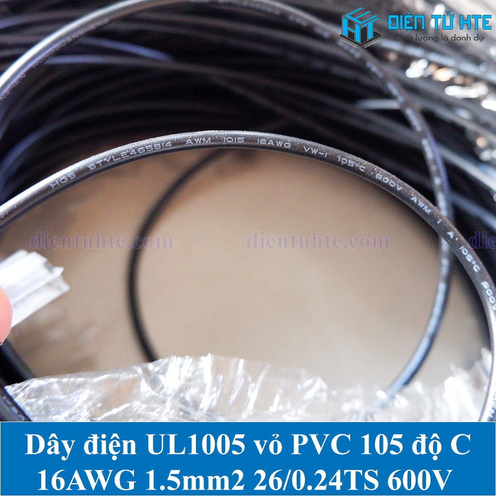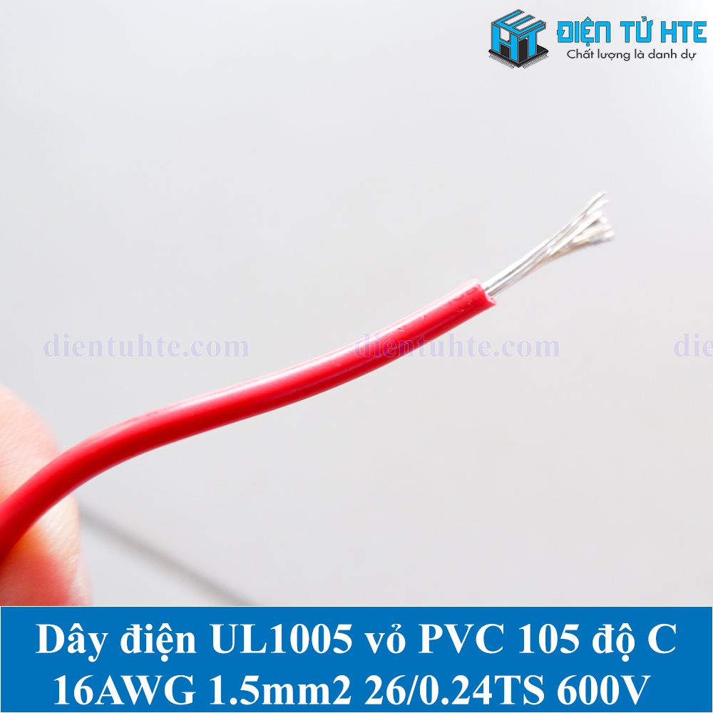 Dây điện UL1015 vỏ PVC 600V 105°C 16AWG 1.5mm2 26/0.24TS (1 mét)