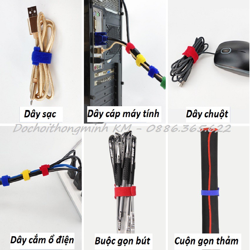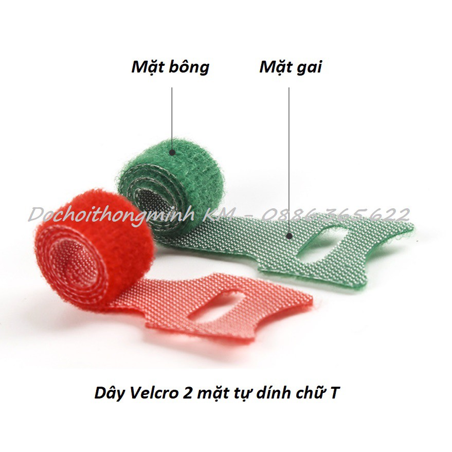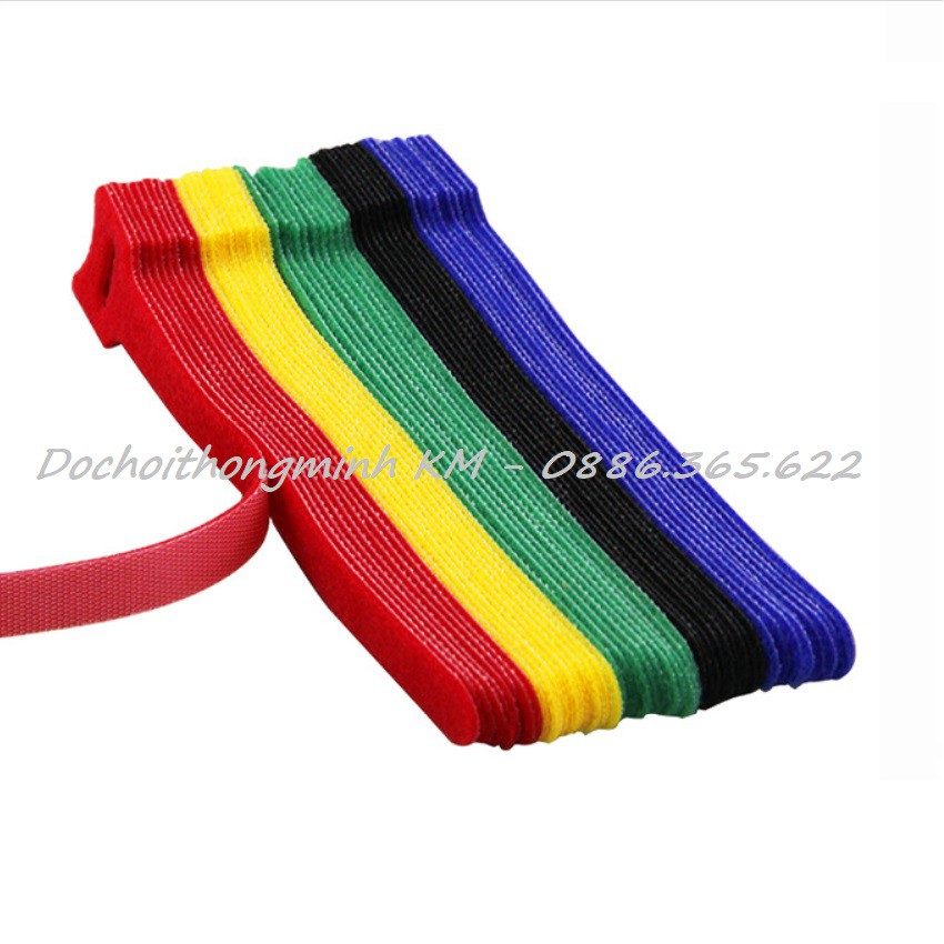 Dây dính nhám Velcro dài 20cm có lỗ chữ T buộc gọn dây cápDây cuộn gọn dây điện hai mặt tự dính nhiều màu sắc