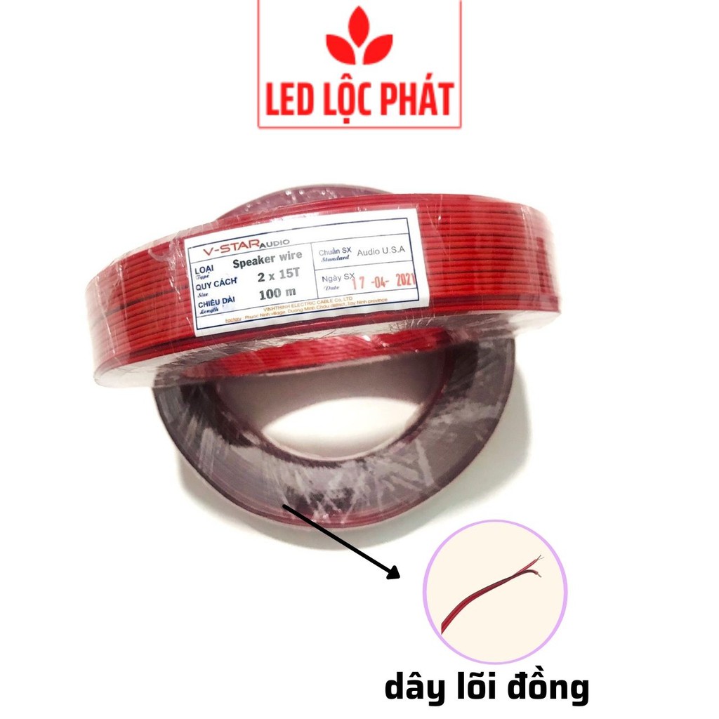 Dây đôi đỏ đen đồng 2x15 tim 100m