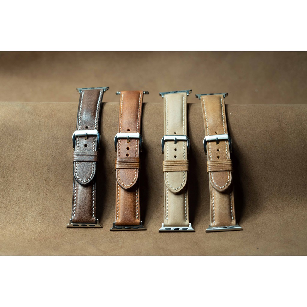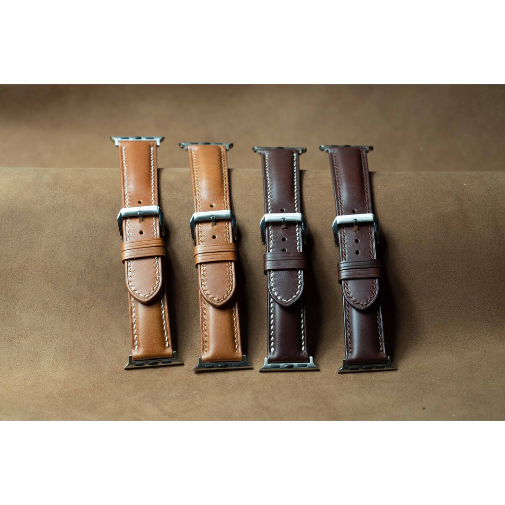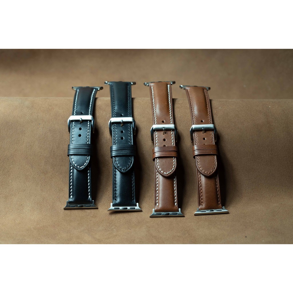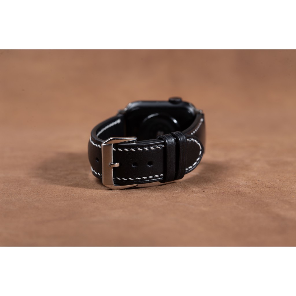Dây đồng hồ apple watch da bò basic handmade màu đen AA