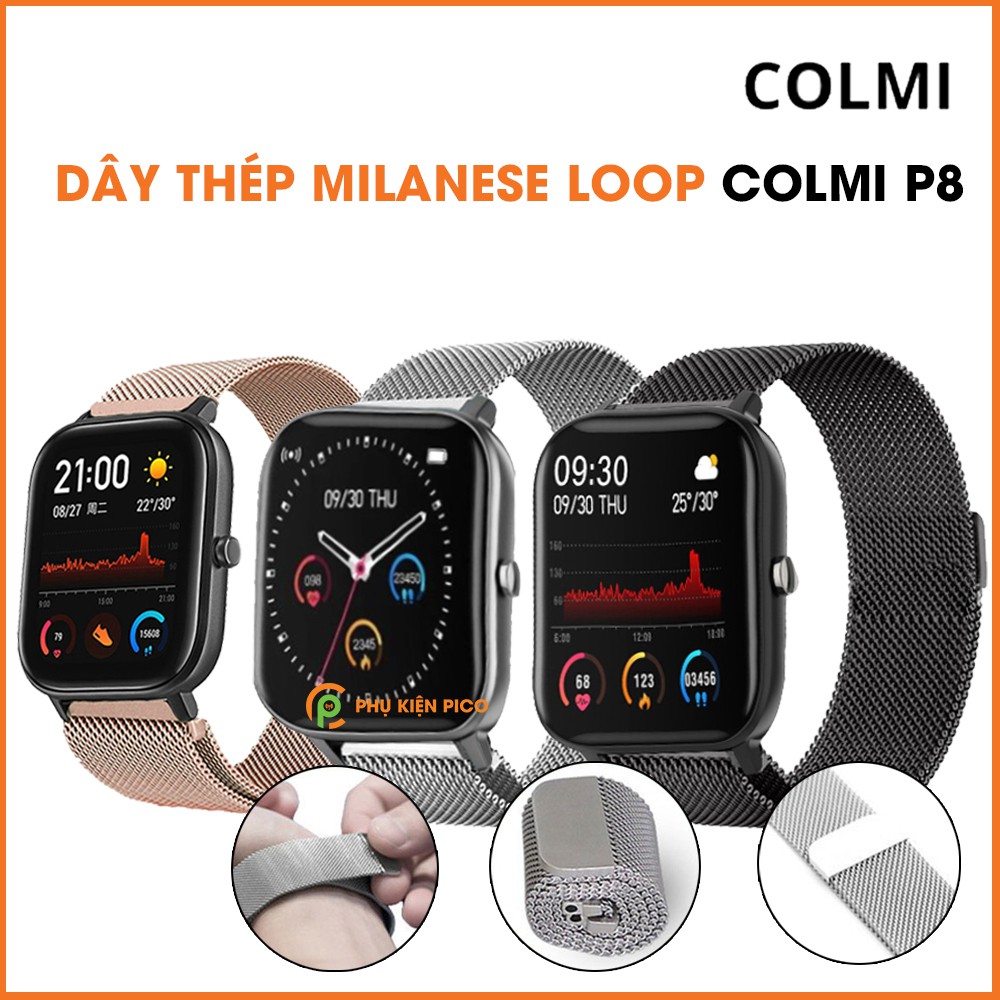 Điện Thoại & Phụ Kiện > Thiết bị đeo thông minh > Đồng hồ thông minh & Vòng đeo tay sức khỏe || Dây đồng hồ Colmi P8 dây đeo bằng thép không gỉ Milanese Loop có khóa nam châmCòn hàng