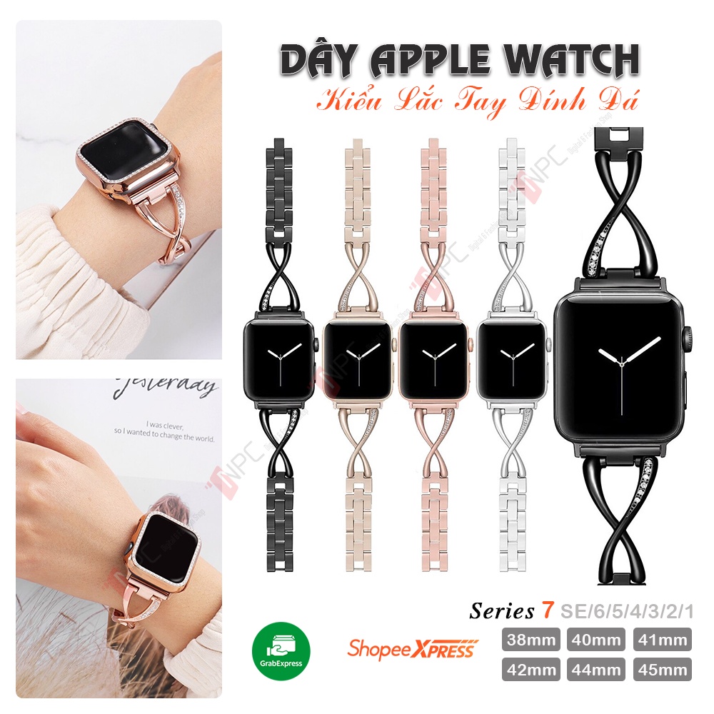 Giới thiệu Dây Đồng Hồ iWatch Kiểu Lắc Tay Đính Đá Series 7 SE 6 5 4 3 2 1 kích cỡ 38mm 40mm 41mm 42mm 44mm 45mm