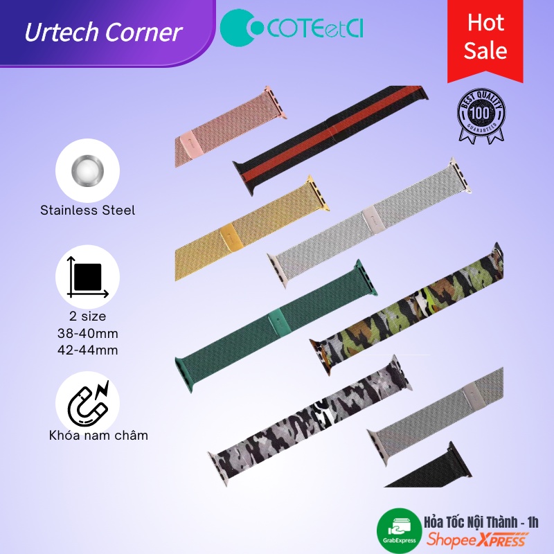 Dây đồng hồ thép không rỉ Apple Watch Coteetci Urtechcorner stainless Milan hai cỡ dùng cho 4 size cho series 1-6/SE