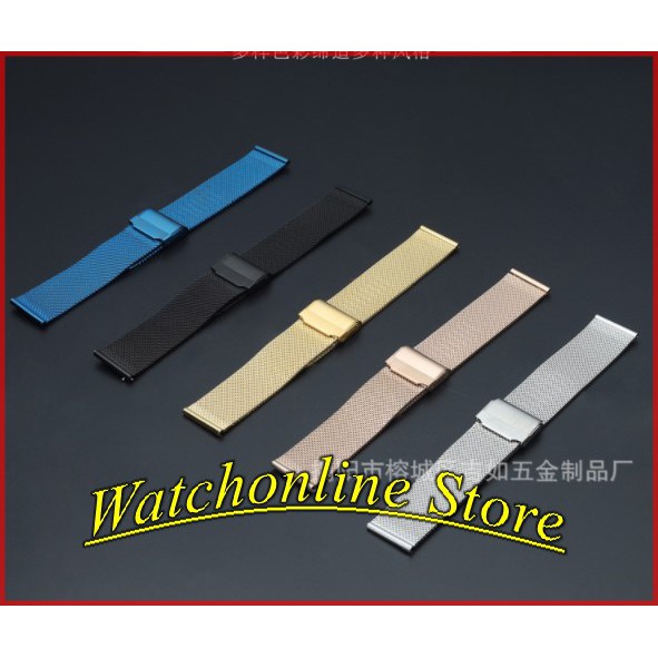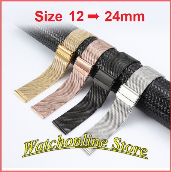 Giới thiệu Dây đồng hồ thép lưới không gỉ 12mm 14 mm 16mm 18mm 20mm 22mm 24mm Tằng kèm chốt (Mesh)