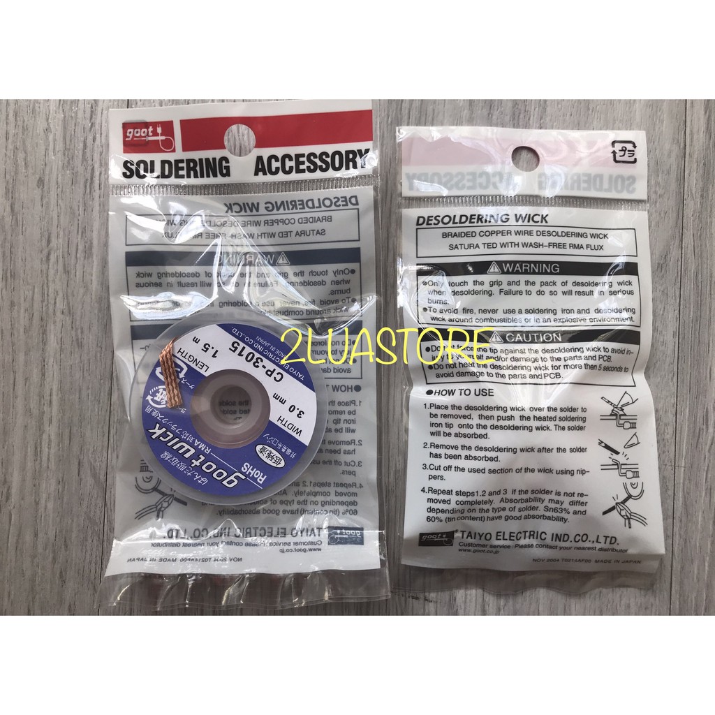 Nhà cửa & Đời sống > Dụng cụ & Thiết bị tiện ích > Dụng cụ > Dụng cụ hàn điện || Dây đồng hút thiếc hàn Goot Wick CP-3015, CP-3515Còn hàng