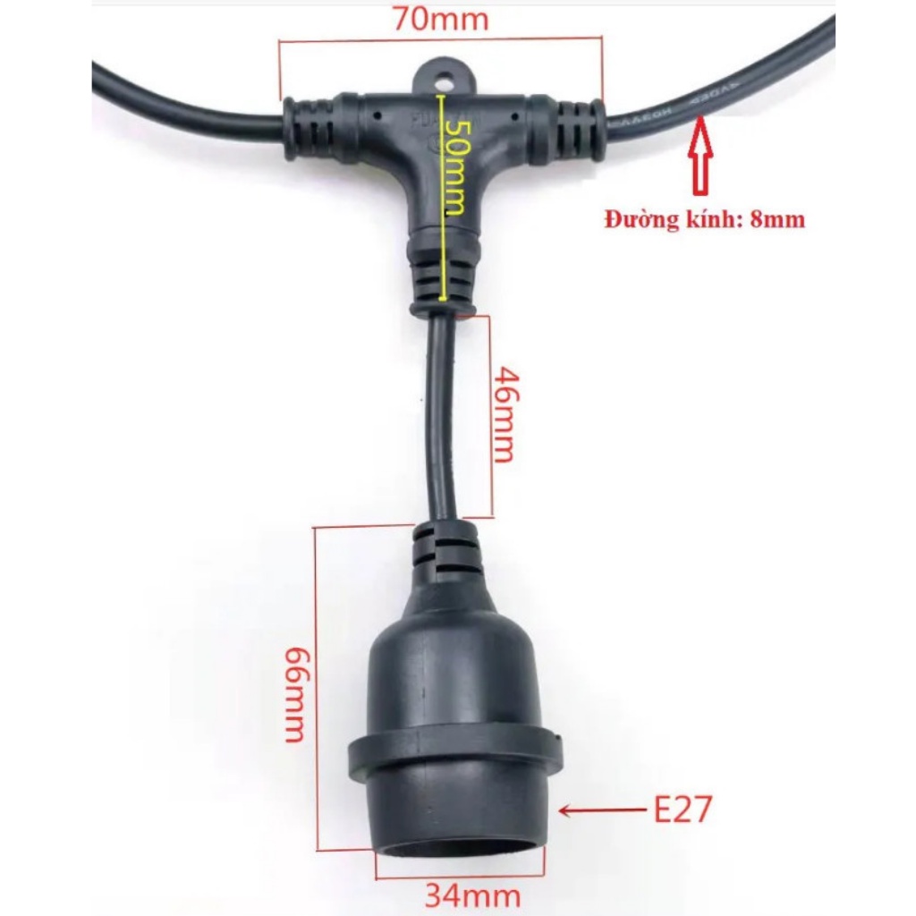 Thiết Bị Điện Gia Dụng > Khác || Dây đui đèn trang trí ngoài trời kín nước, dây màu đen, dài 5m 10 đui, 10m 15 đui, 10m 20 đuiCòn hàng