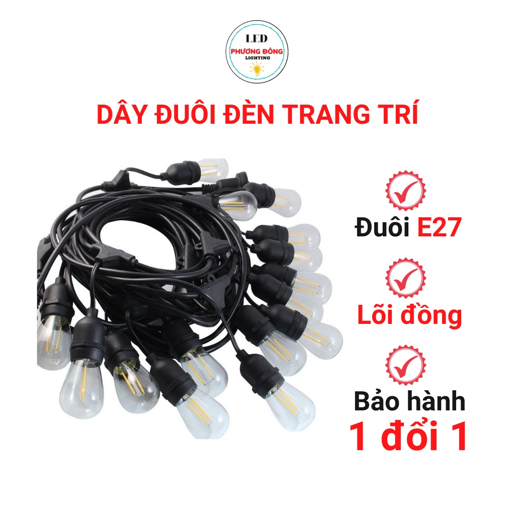 Dây đui đèn trang trí ngoài trời kín nước, dây màu đen, dài 5m 10 đui, 10m 15 đui, 10m 20 đui*MÔ TẢ SẢN PHẨM