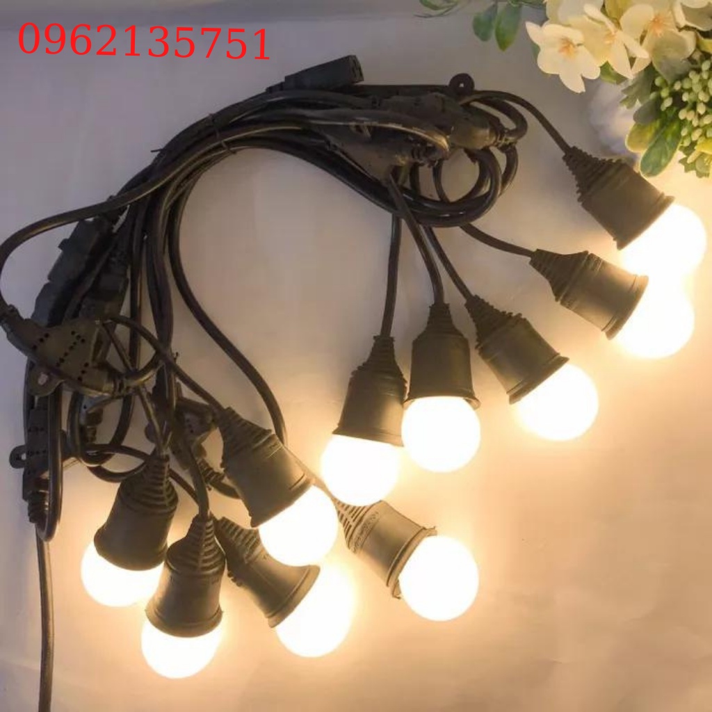 Dây đui đèn trang trí ngoài trời kín nước, dây màu đen, dài 5m 10 đui, 10m 15 đui, 10m 20 đui