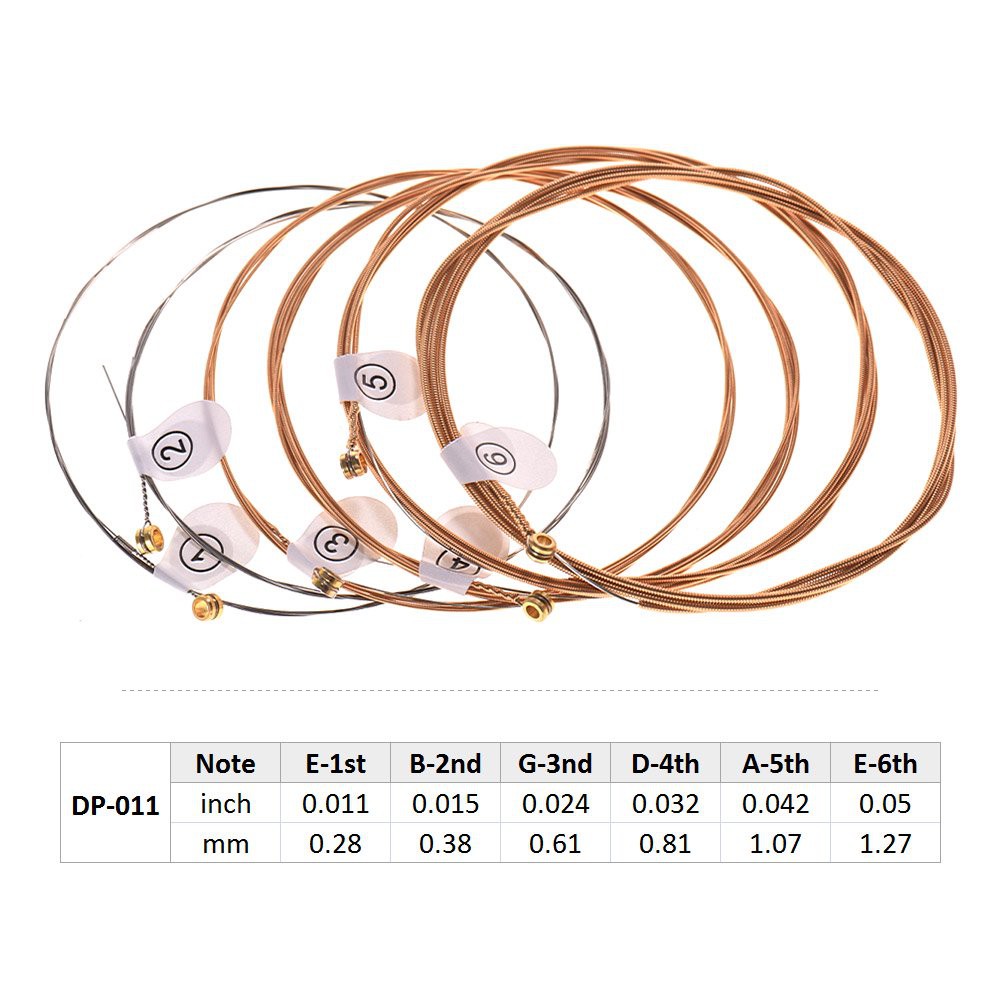 DP là dòng dây Phosphor Bronze của hãng Ziko, bộ gồm có 6 dây hai dây 1 và 2 được làm bằng thép đặc biệt sơn tĩnh điện chống gỉ sét, dây 4,5,6 có lõ bằng thép đặc biệt hình lục giác bọc bên ngoài là dây đồng Phosphor, ngoài cùng có mạ lớp chống gỉ sét giúp dây giữ được độ bền lâu hơn, dây cho tiếng ấm và sâu dây trơn và mềm.Sản phẩm có ba size dây nên phù hợp với tất cả mọi người chơi guitar.