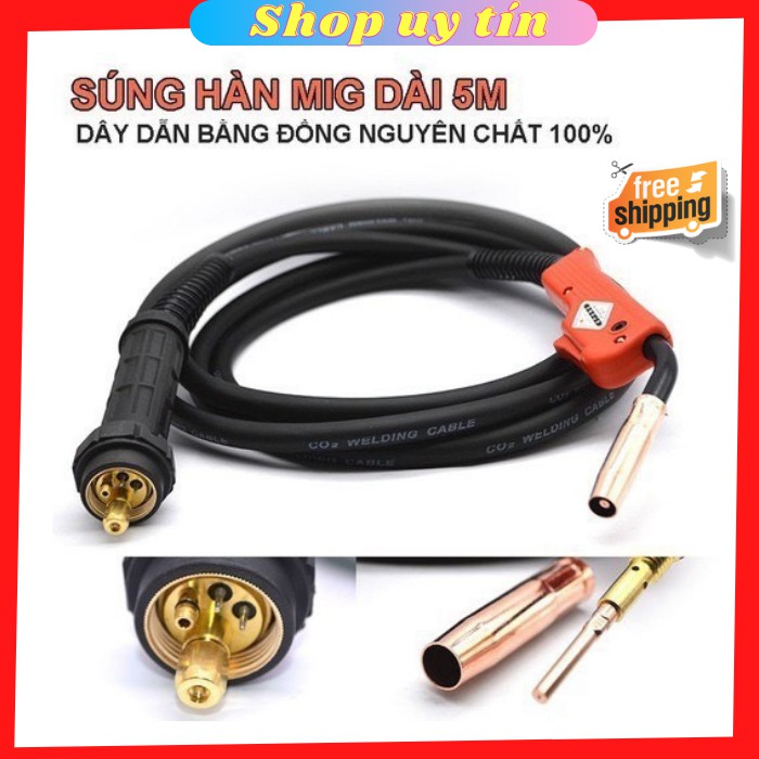 súng hàn mig 5m được sản xuất 100% là đồng nguyên chấtNgoài ra chúng tôi còn chuyên cung cấp các sản phẩm về ngành hàn như máy hàn Tig Mig và máy cắt plasma , các loại phụ kiện máy hàn như mỏ hàn tig , mỏ hàn mig , mỏ hàn que , các loại đồng hồ đo khí C02 , Argon ; các loại mỏ cắt plasma như mỏ cắt plasma P80 , bép cắt plasma ...Thêm vào đó còn cung cấp các loại kính hàn điện tử , kính hàn tự động ,mặt nạ hàn điện tử , mũ hàn tự động , mặt nạ hàn cảm quang , mũ hàn bảo hộ ,găng tay hàn bảo hộ giúp bảo vệ người thợ hàn .