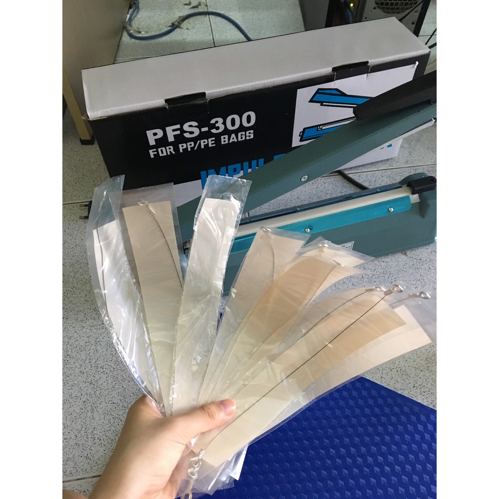 DÂY NHIỆT CHUYÊN DÙNG ĐỂ CẮT- ĐƯỜNG CẮT MỎNG 0.5MM SIÊU ĐẸP.Sử dụng thay thế cho máy hàn túi 200mm (Máy PFS200, FS200, F200) Dễ dàng thay thế Mỗi bộ gồm 1 dây dẫn nhiệt kim loại, 1 màng vải tổng hợp chống dính nhựa nilon