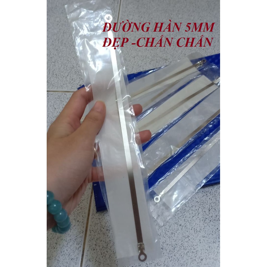 • ĐƯỜNG HÀN 3MM SIÊU ĐẸP!THA HỒ LỰA CHỌN NHÉ!!!• Công dụng:Máy hàn miệng túi sau một thời gian sử dụng thanh dây hàn sẽ ko còn tốt và cần phải thay thế để đường hàn được đẹp và chắc chắn hơn! Nếu vải chịu nhiệt bị hư hỏng sẽ gây ra hiện tượng đoản mạch, gây hỏng máy do đó cần thay thế kịp thời. Chỉ cần thay thế dây hàn là bạn lại có một chỉ máy hàn miệng túi như mới mà không tốn quá nhiều chi phí!Dễ dàng thay thế! Mỗi bộ gồm 1 dây dẫn nhiệt kim loại, 1 màng vải tổng hợp chống dính nhựa nilon.