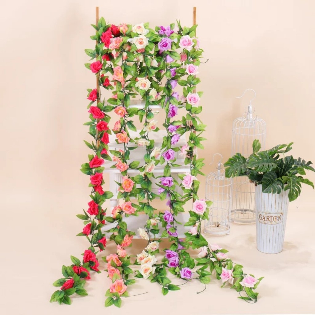 Nhà cửa & Đời sống > Trang trí nhà cửa > Hoa trang trí || Dây Hoa Hồng Leo Dài 2m3 Hoa Giả Cao Cấp Trang Trí Nhà Cửa Sự Kiện DG-27Còn hàng