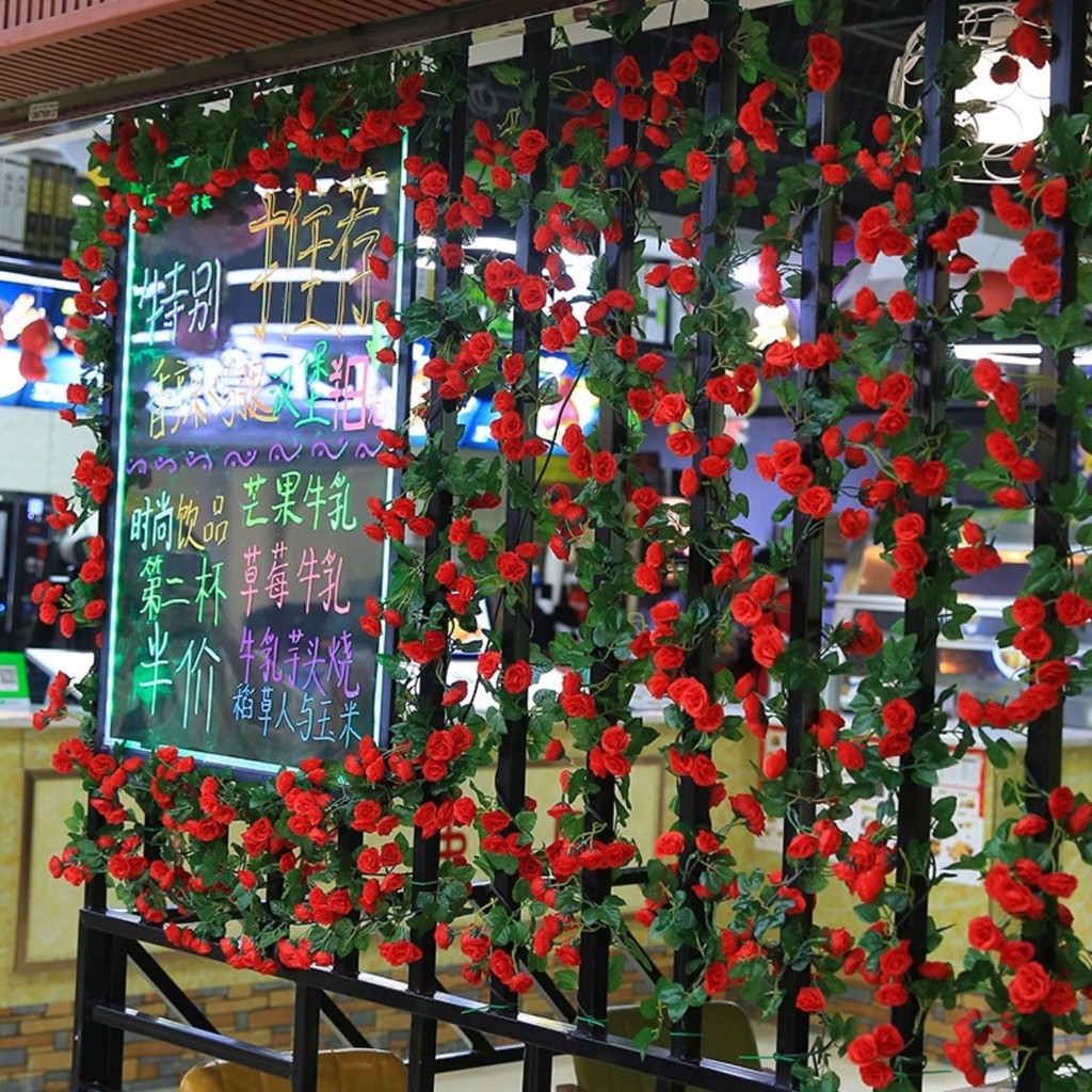 Dây hoa hồng leo giả dài 2m3 trang trí nhà cửa, cafe, nhà hàng, studio, hoa giả cao cấp