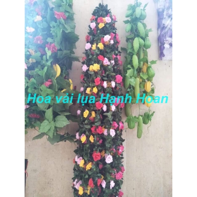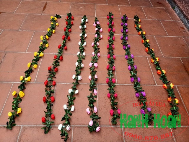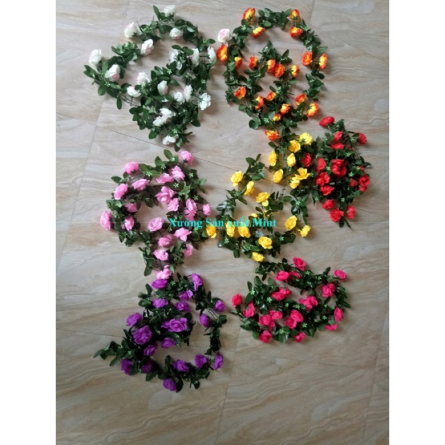 Dây hoa hồng trang trí hàng rào, tường, quán Cafe, nhà cửa, trường mầm non, siêu thị,...- Dây dài 175cm gồm 20 hoa với đường kính ~3cm và rất nhiều lá
