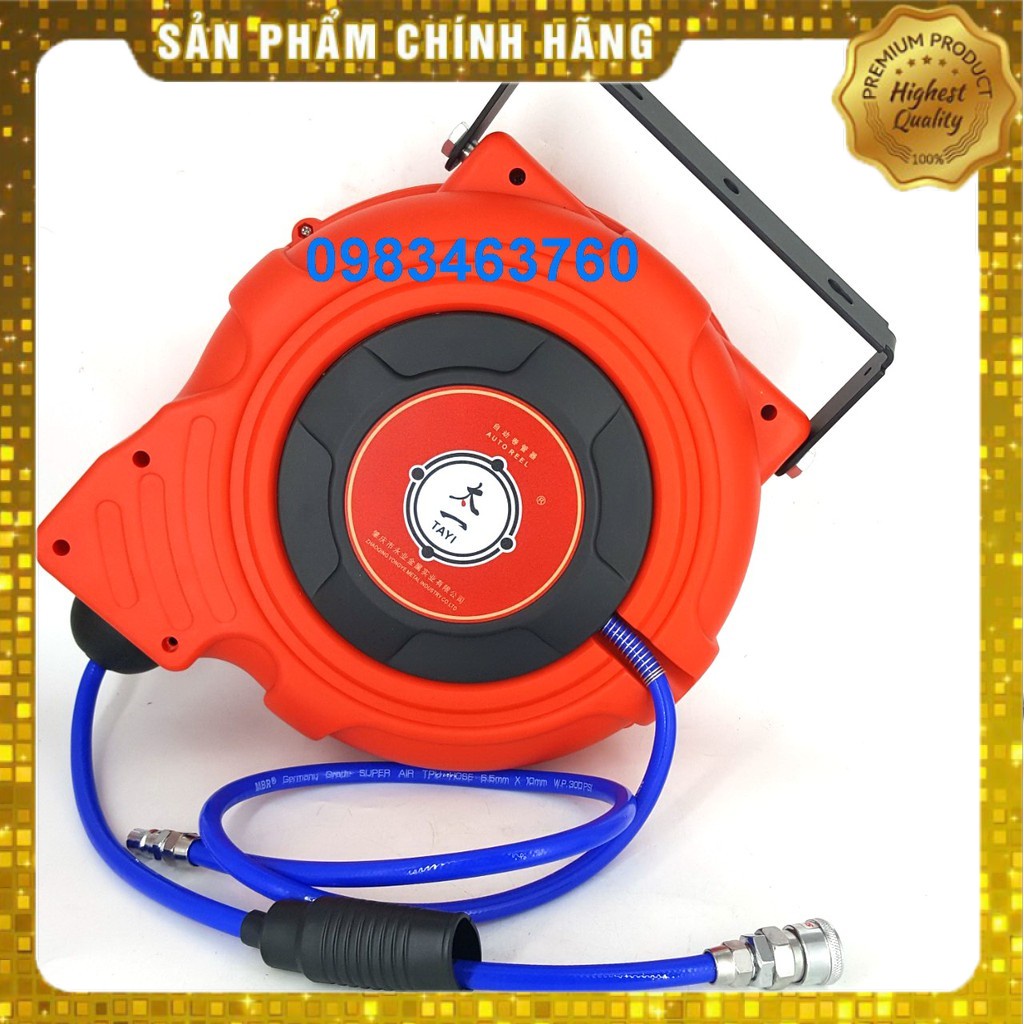 CUỘN DÂY HƠI TỰ RÚT TAYI PHI 12 DÀI 10M TẶNG KÈM SÚNG XỊT BỤICuận Dây Hơi Rút Tự Động Dài 10 Mét Dây Nén Khí Áp Lực Chất Liệu PU Kích Thước Ống 8mm x 12mm