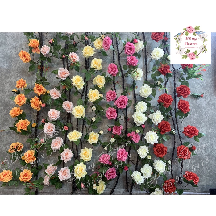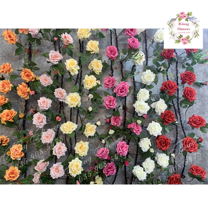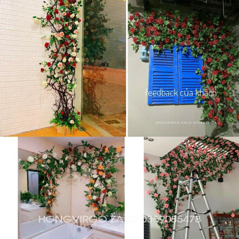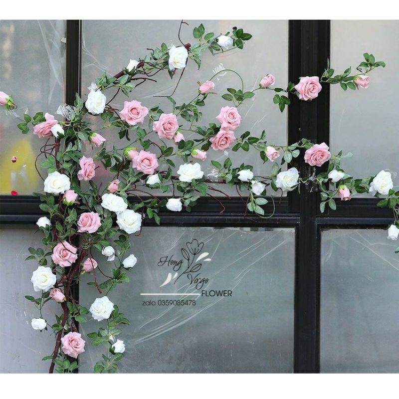 Giới thiệu Dây Hồng Leo Giả 3M 14 Bông 9 Nụ 5 Lộc Đường Kính Hoa 11cm