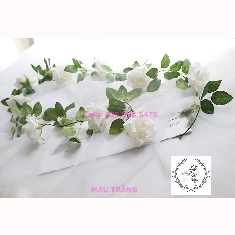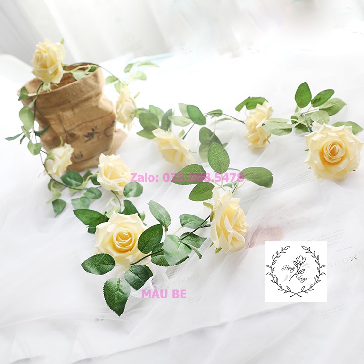 * 2m thân nhựa dây 7 bông to, 5 nụ chất bông vải lụa