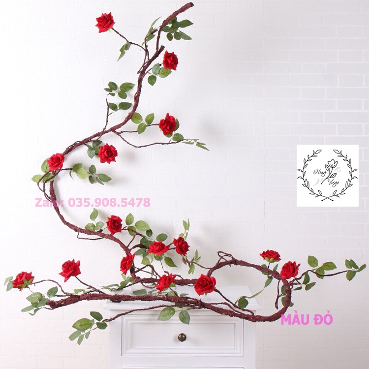 * 3m thân cổ dây 15 bông chất bông nỉ nhung cao cấp, thân cổ leo dễ dàng uốn nắn tạo kiểu.