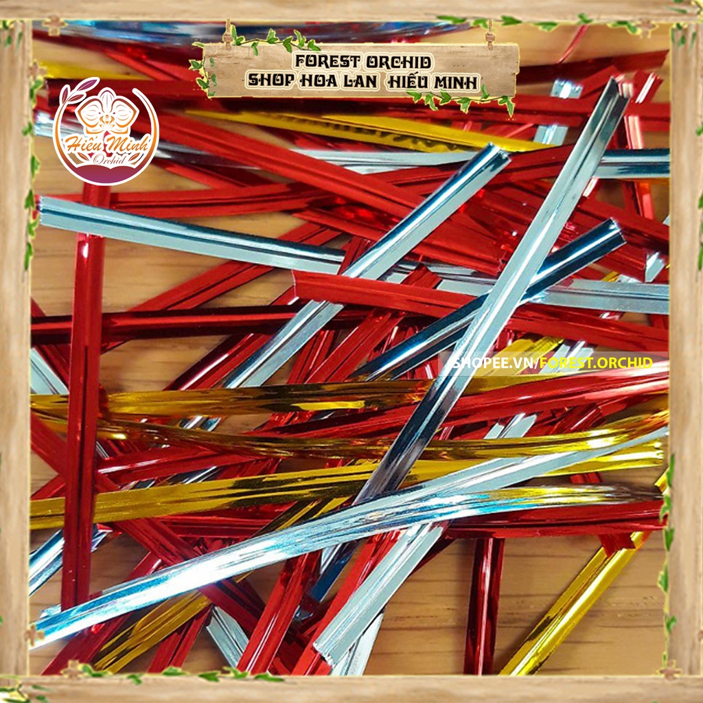 Dây Kẽm Kim Tuyến, Dây Bọc các Màu 100M - Dây Buộc Hoa Lan, Hoa Hồng, Cây CảnhDây Kẽm Kim Tuyến, Dây Bọc các Màu 100M là loại dây buộc có tính thẩm mỹ cao, bên ngoài bọc nhựa kim tuyến, bên trong lõi kẽm dùng để buộc cố định ngồng hoa lan. Ngoài việc dùng để buộc lan, dây còn được dùng cho nhiều công việc khác như buộc bưu kiện, buộc đồ vật trong nhà. Dây có độ bền cao, chịu được thời tiết nắng mưa ngoài trời.