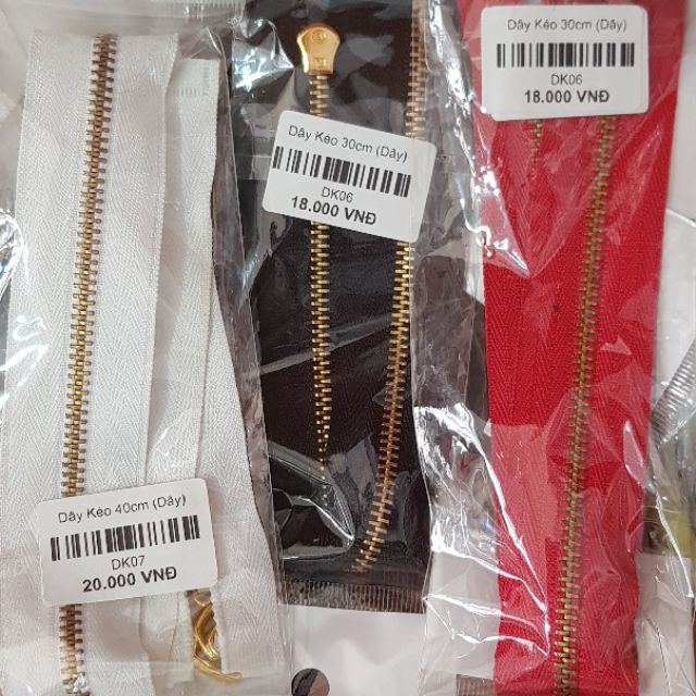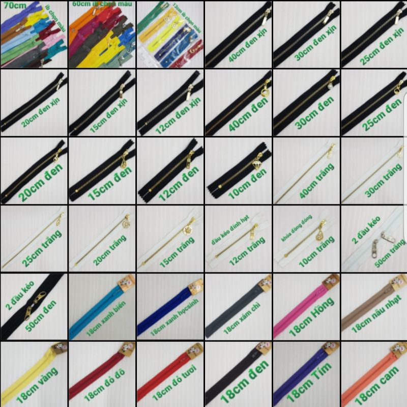 Dây kéo từ 10cm đến 40cm giá từ 9k đến 20k 1 dây. Chủ yếu màu trắng đen và các màu chủ đạo như đỏ, vàng, xanh v.v. nếu các bạn đặt màu lưu ý ghi chú số màu giúp mình nhé!Giá BOSON