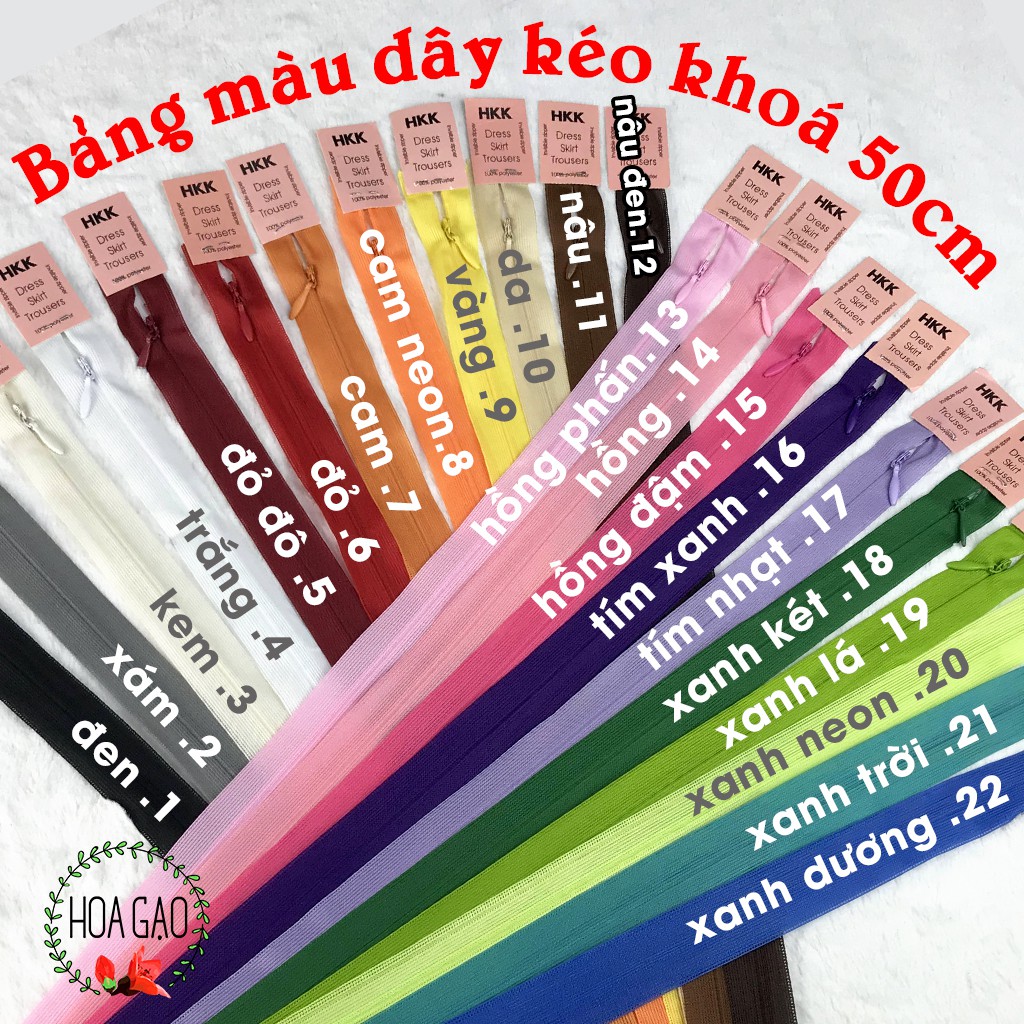 💖 Dây kéo khoá, khoá kéo giọt nước giọt lệ HKK 50cm, lựa chọn màu dể dàng làm khoá kéo áo gối, váy đầm, áo, áo dài,.. chiều dài vừa phải, giá thành rẻ. Dây kéo khoá hiệu HKK chất liệu tốt nhất và không bị giãn dây khi tra vào váy, giảm thiểu độ gợn sóng dây kéo khi may thành phẩm. Là sản phẩm không thể thiếu của phụ kiện may mặc, handmade nguyên liệu.💖 Thông tin sản phẩm: