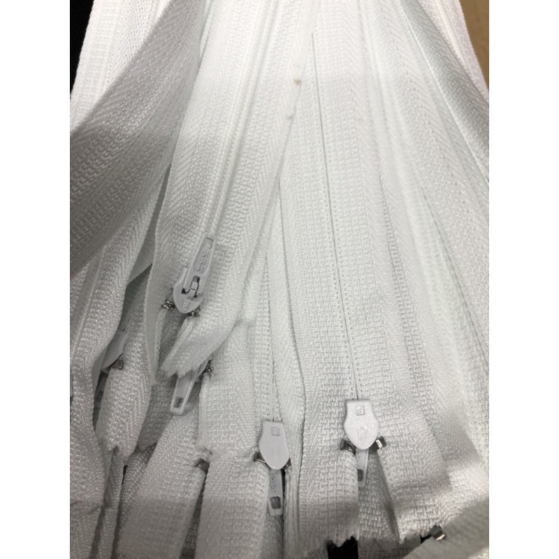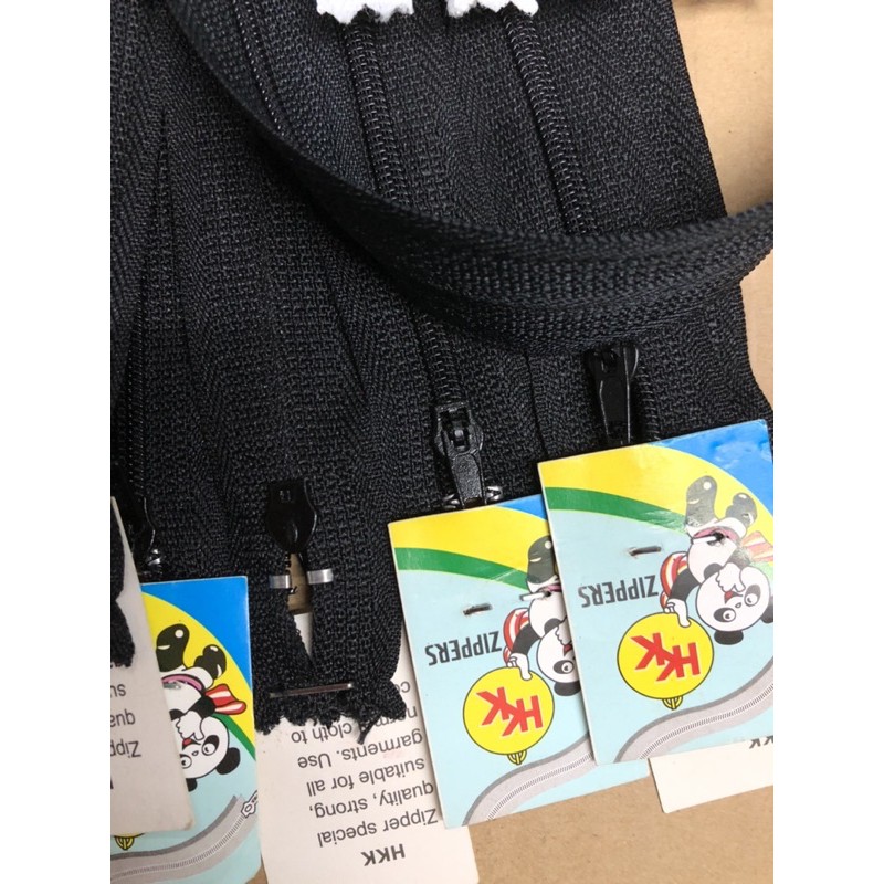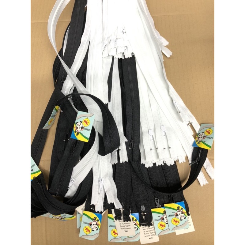 Dây kéo thương hiệu HKK đuôi đóng, có 2 màu đen và trắng. Dùng may bao áo gối,...Size 30cm : 35k/lốc (12sợi cùng màu)