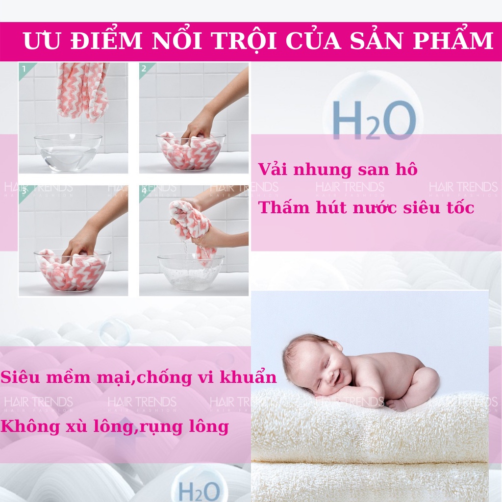-Chất liệu vải nhung san hô siêu thấm nước,giúp tóc khô siêu nhanh hạn chế thời gian dùng máy sấy tóc.