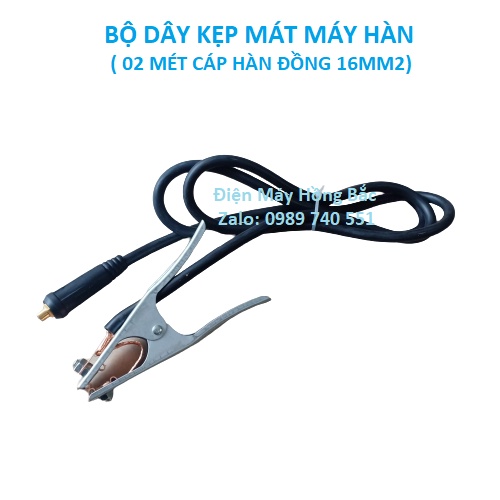 - Dây mát 2 mét: 01 bộ dây kẹp mát gồm kìm kẹp mát và 2 mét cáp đồng 16mm2, giắc cắm nhỏ 10-25